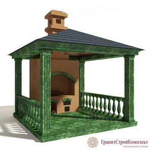 Беседка из натурального камня в стиле Аля Рус,мрамор Змеевик