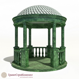 Ротонда из натурального камня 1,мрамор Змеевик высота — 3.53 м. диаметр 3.86 м,Ступень каменная 1630×680×30мм — 6 шт (с эффектом «мокрый камень») ( цена указана за комплектующие из камня , крыша изготавливается за дополнительную стоимость)